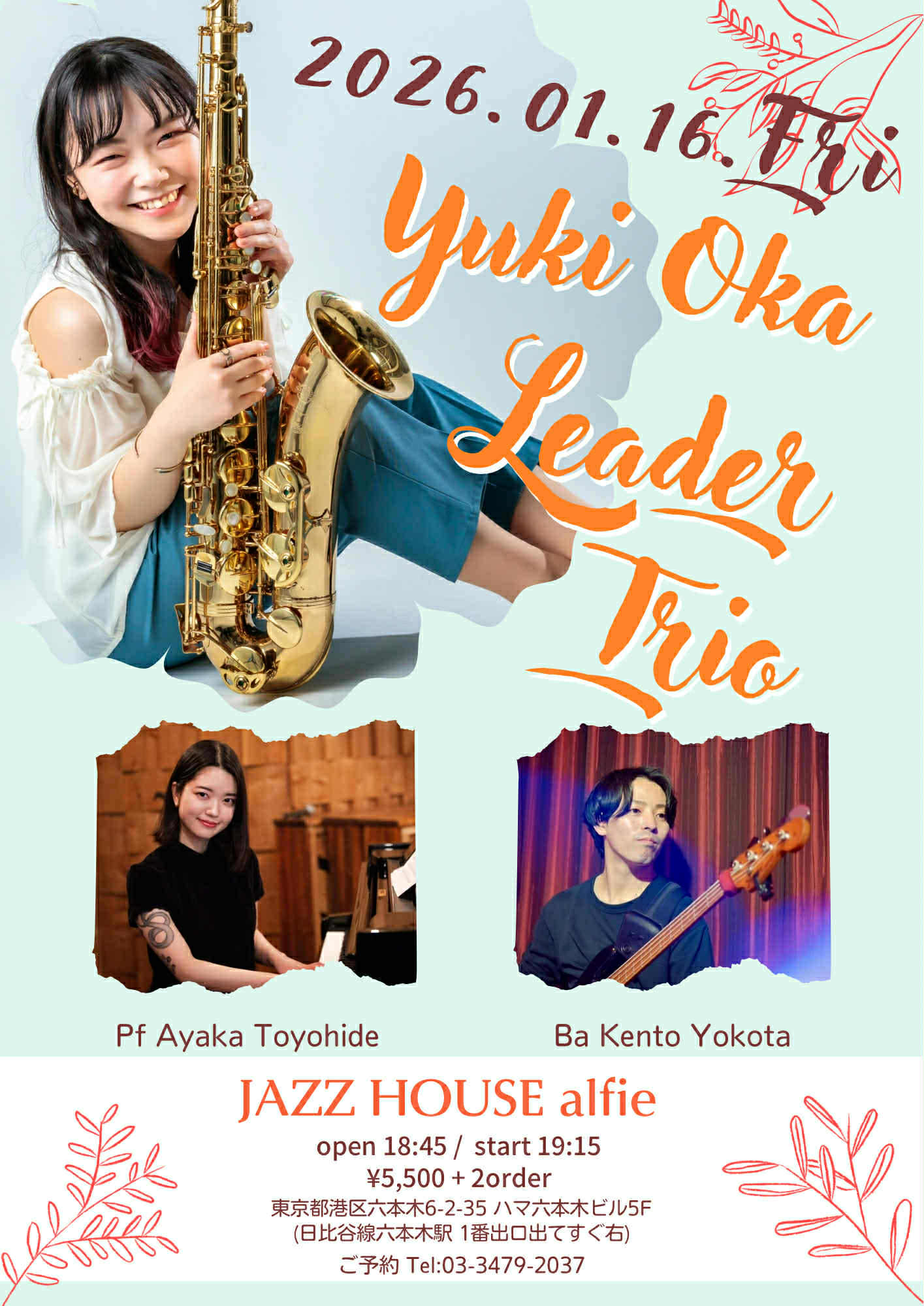 16 (fri) [jazz] 岡勇希(sax) 豊秀彩華(p) 横田健斗(b) ¥5500