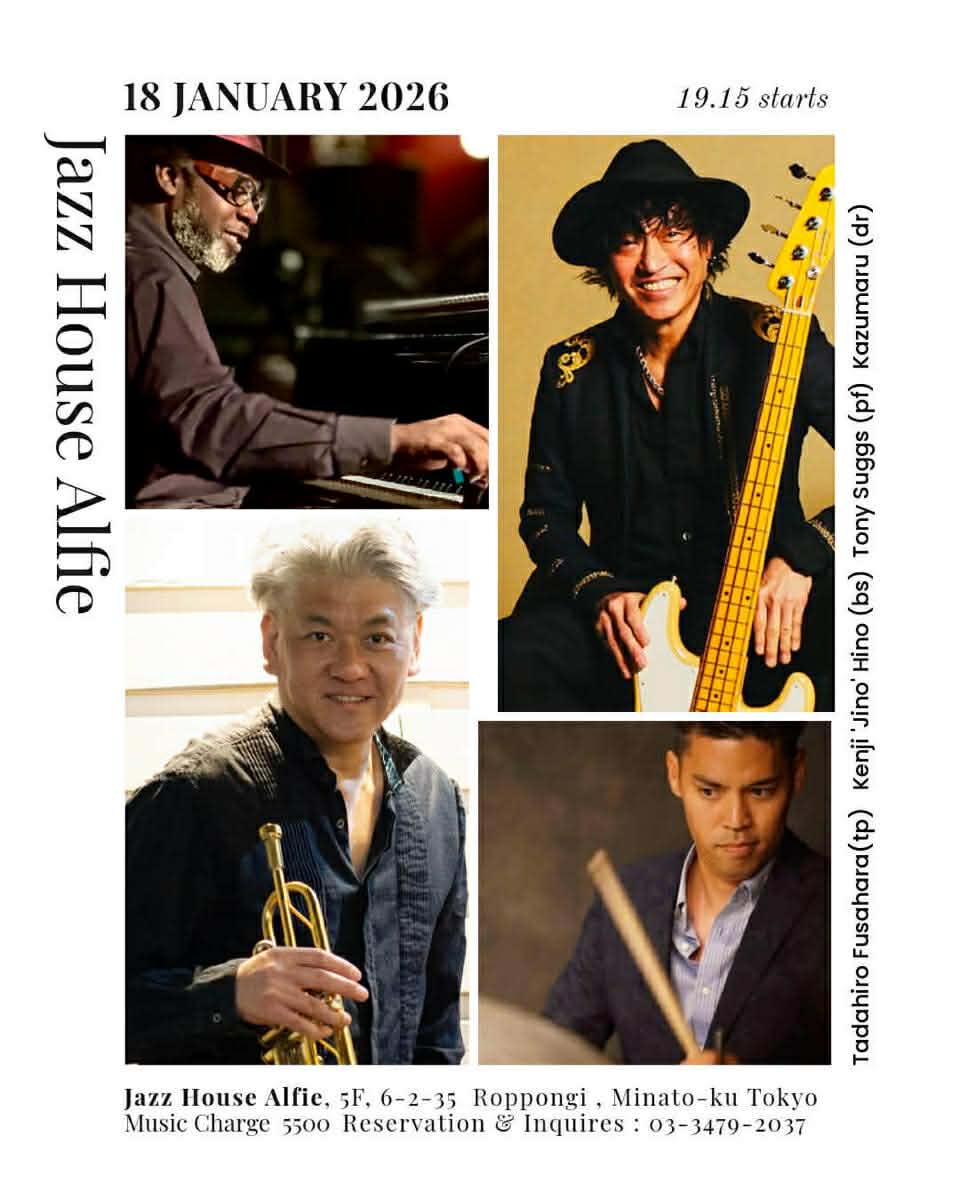 18 (sun) 日野"JINO"賢二(eb) Session Tadahiro Fusahara(tp) Tony Sggs(p) Kazumaru(ds) ¥5500